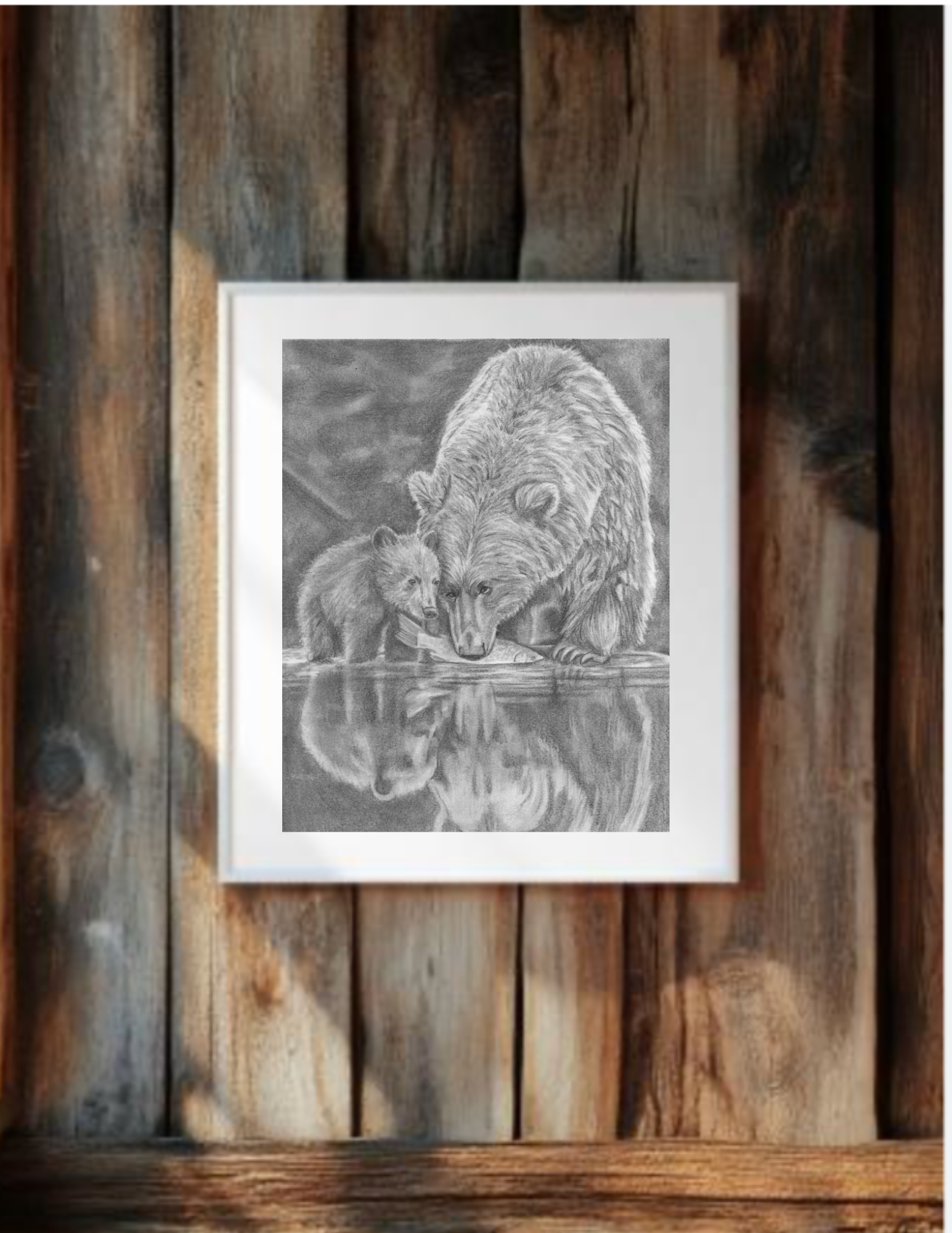 Teaching the Young is a heartfelt graphite pencil drawing that captures the quiet, powerful bond between a mama bear and her cub. This piece reflects the beauty of guidance, protection, and the lessons passed down through generations, brought to life through soft shading and careful detail!